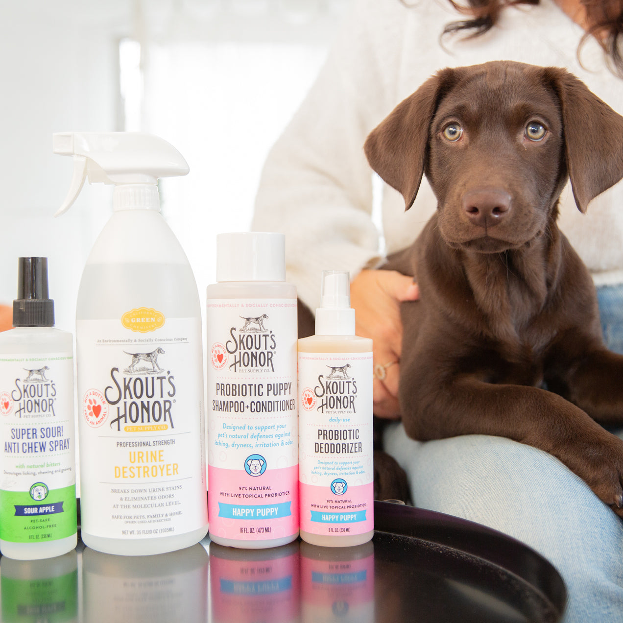 Attention all puppy parents! We've got you covered with the essentials you need to handle any and every 'messy' situation that comes your way. Whether it's bath time, potty training time or 'chewing on the wrong thing' time - this bundle has what you need to get through it.