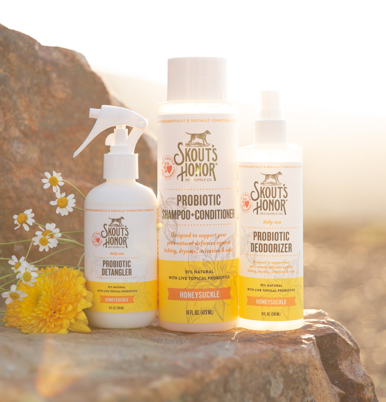 Skout's Honor's encapsulated probiotic kefir delivers millions of live beneficial microbes to help support the skin’s natural microbiome, which serves as the first line of defense against the environmental damage commonly associated with excessive shedding, itching, dryness and odor.