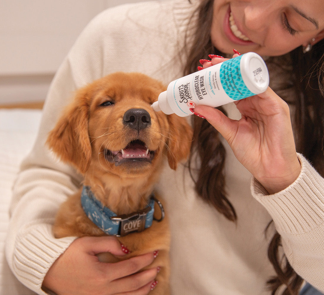 Skout’s Honor HydroClear™ Eye Wash is a gentle, non-medicated solution designed to cleanse, soothe and moisturize your pet’s eyes and surrounding areas. Powered by hyaluronic acid, it provides instant hydration while gently flushing out gunk, debris, allergens, and post-swim irritation. Safe for both dogs and cats, this daily-use formula also helps reduce the appearance of tear stains and keeps eyes clear, clean, and comfortable. As part of the Skout’s Honor Wellness collection, it offers a modern, holistic approach to eye care that is backed by science and powered by nature.