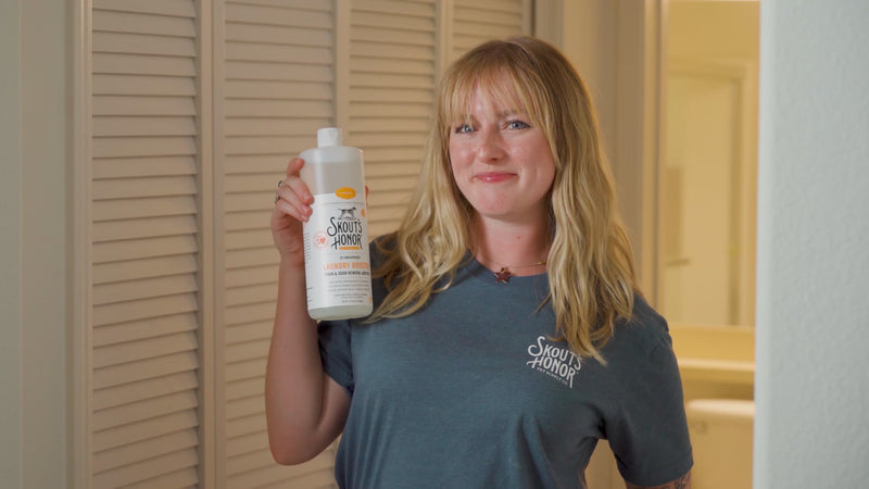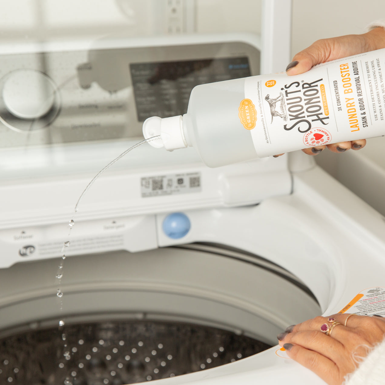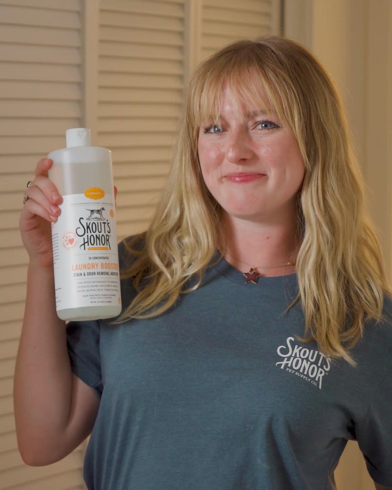 Skout’s Honor Laundry Booster is a wash-day essential for pet parents who want serious cleaning power without harsh chemicals, because let’s face it, pets have laundry too. Whether they sleep in your bed or leave their mess on your towels and blankets, this powerful formula levels up every load (up to 32 loads in every bottle). Powered by plant-based BioKore® and our award-winning mineral-based deodorizer, it breaks down stubborn stains and odors at the source, leaving pet bedding, clothing, and linens truly clean and fresh. It works in any water temperature, never expires, is compatible with HE washers and meets California Green Chemistry standards to deliver lasting results.