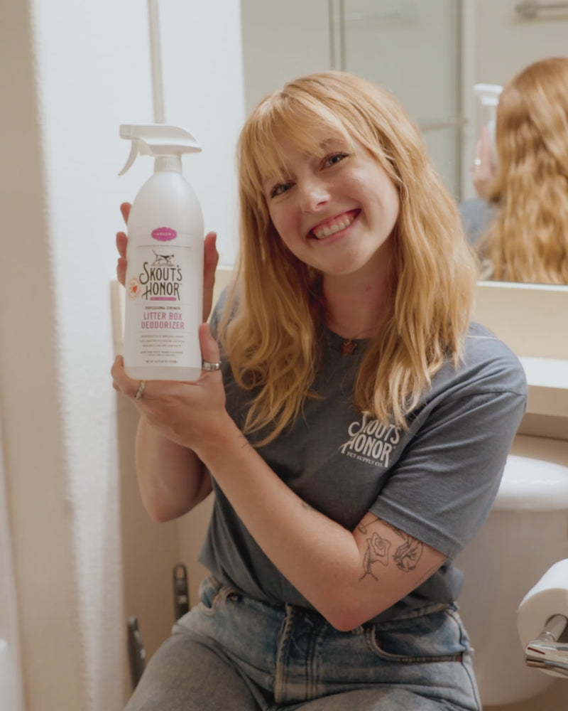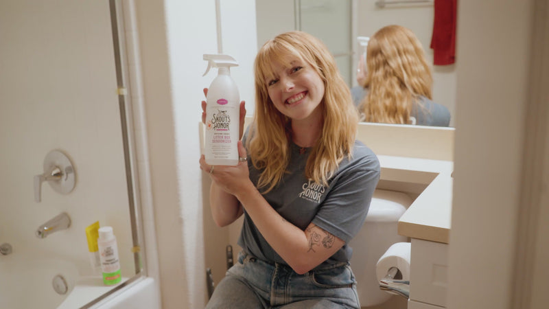 Skout’s Honor Litter Box Deodorizer instantly eliminates feline odors at the source, without the need for fragrance or harsh chemicals. Powered by our Molecular Deodorizer, it instantly breaks down litter box odors from cat urine, feces, and pheromones on litter and in the surrounding air. This daily essential for any cat parent keeps your home smelling clean and fresh between litter changes. It meets California Green Chemistry standards to safely deliver lasting results.