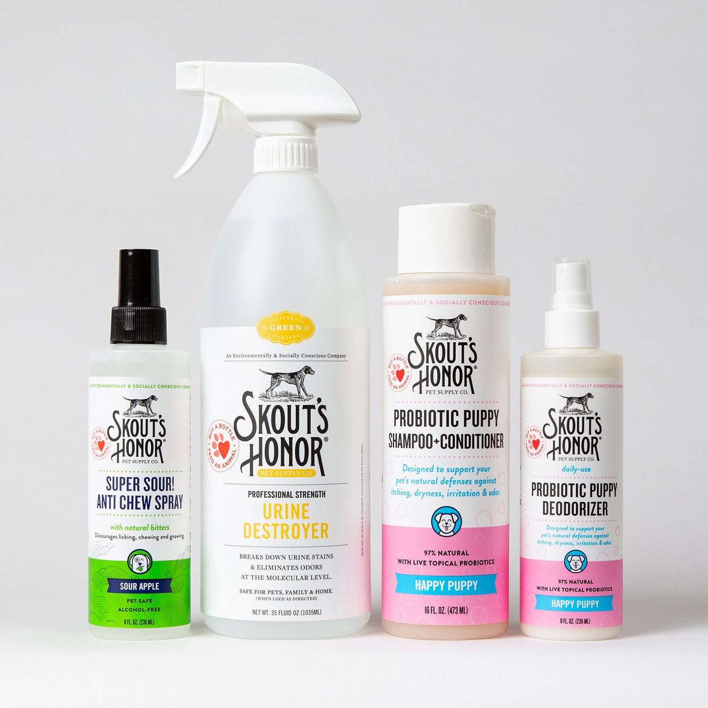 All the puppy essentials you need to handle any furry situation whether it be bubble bath time, potty training time or 'chewing on the wrong thing' time!