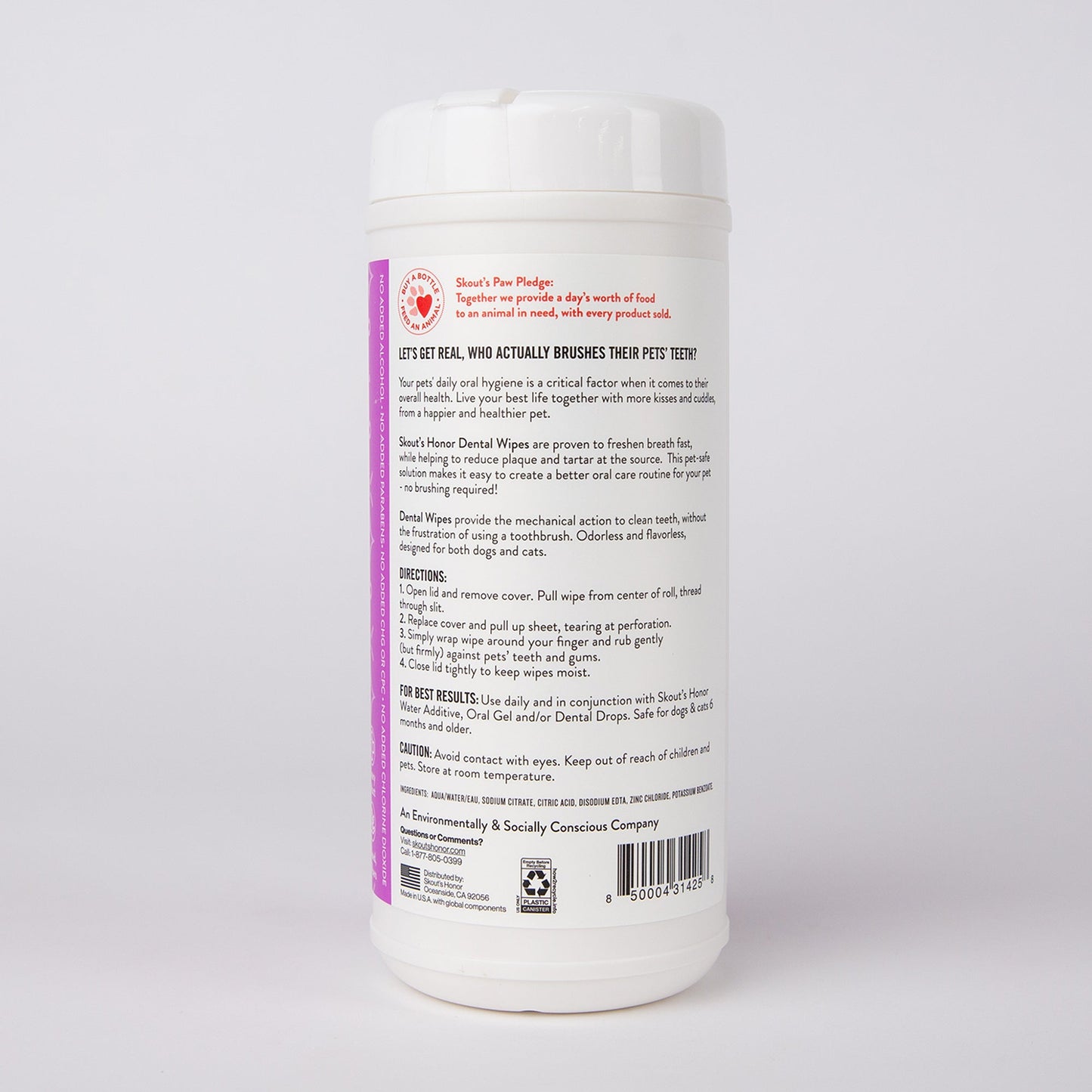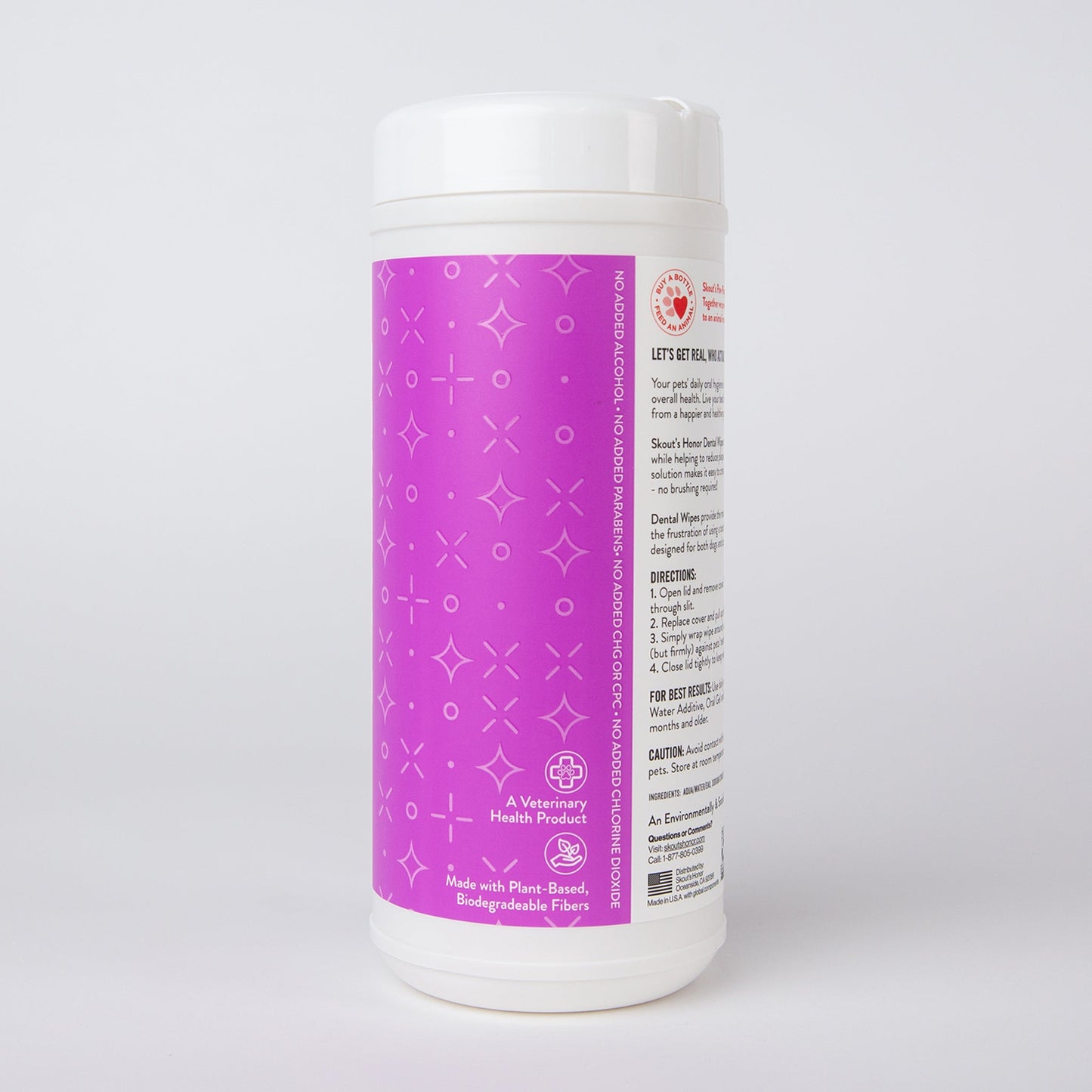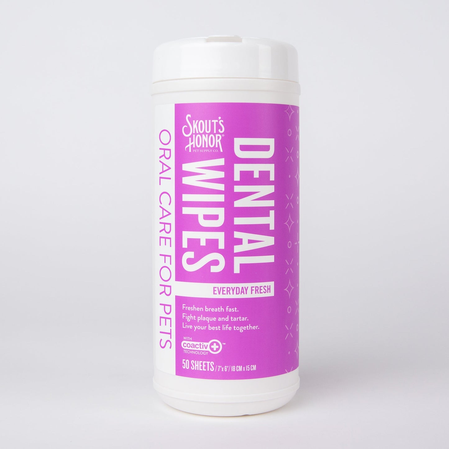 Skout’s Honor Dental Wipes are the most convenient way to manually clean your pet’s teeth and freshen their breath—no brushing required. Powered by coactiv+® technology, these easy-to-use wipes provide gentle mechanical cleaning action with every swipe, helping to reduce and break down tartar, freshen breath, and support daily oral hygiene. As part of the Skout’s Honor Oral Care collection, our odorless and flavorless wipes are designed to help pet parents build an easy, daily oral care routine.